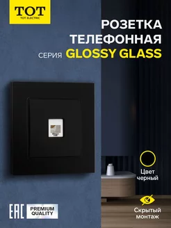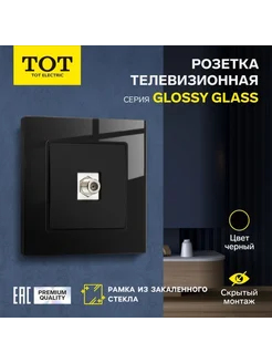 Чёрная телевизионная розетка скрытого монтажа стекло