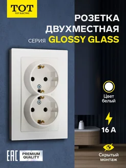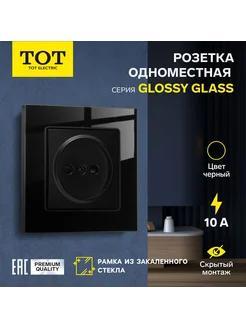 Розетка одноместная Glossy Glass, 10 А, скрытая, без з к