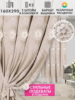 Шторы Бархат с вышивкой 160х290 см - 2 шт