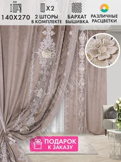 Шторы Бархат с вышивкой 2 шт 140х270 см