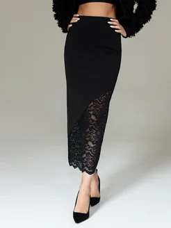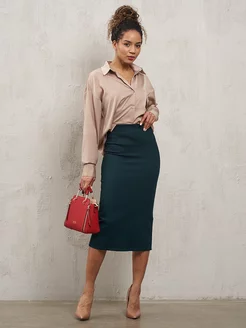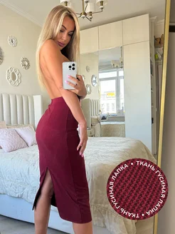 Юбка карандаш офисная с разрезом с принтом гусиная лапка