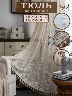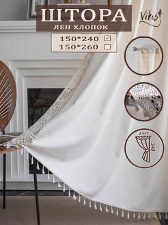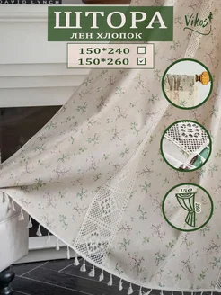 Льняные шторы с кружевом по краям, винтажные 150*240