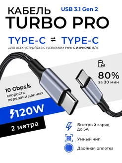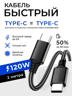 Кабель USB Type-C 2 метра 120W 5A быстрая зарядка