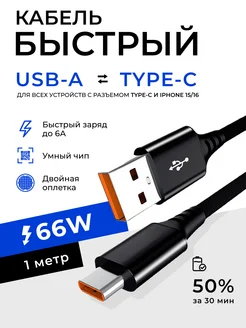 Кабель USB Type-C 1 метр 66W 3A 6A быстрая зарядка