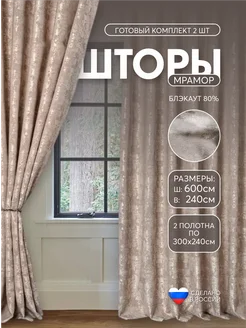 Шторы мрамор для гостиной и спальни 2 шт 600х240см
