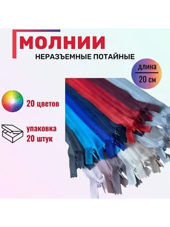 Набор молнии потайные неразъем 20см, (уп 20 шт)