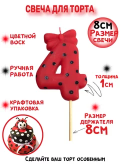 Свечи для торта красные цифра 4