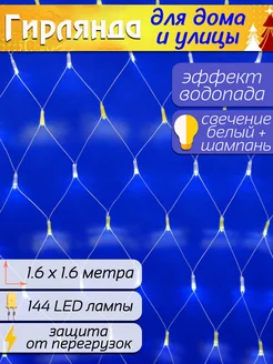 Гирлянда сеть водопад 1,6x1,6м, 144 LED, цвет белый шампань