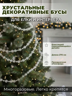 Бусы декоративные прозрачные 270 см, диаметр 0.8 см