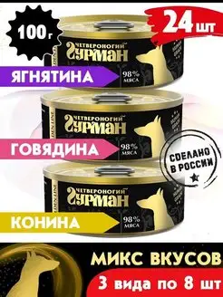 Корм для собак влажный Микс ягнятин+говядин+конина 100г 24шт