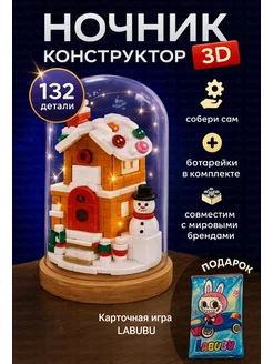 Блочный конструктор ночник Домик с гирляндой,132 деталей