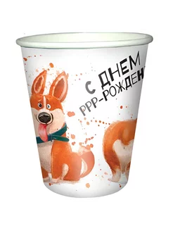 Одноразовые бумажные стаканы на день рождения Корги 6шт