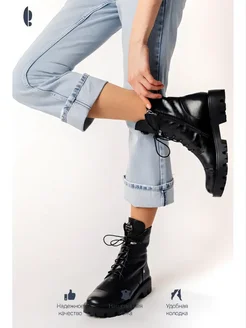 Ботинки черные натуральная кожа большие размеры на каблуке