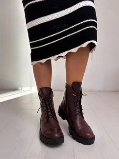 Ботинки бордовые натуральная кожа большие размеры на каблуке