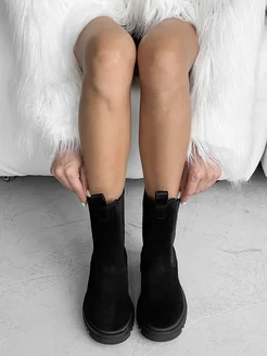 Ботинки челси зимние натуральная замша