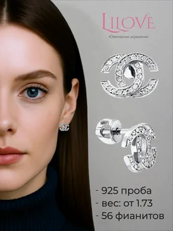 Серьги гвоздики в стиле Сhanel серебро