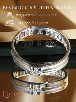 Кольцо обручальное спаси и сохрани серебро с бриллиантами