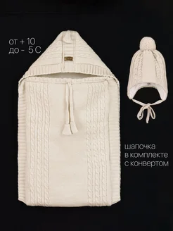 Конверт вязаный утепленный для новорожденного малыша