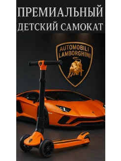 Детский самокат складной трехколесный LED Lamborghini
