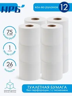 Туалетная бумага 1 слой 75 метров 12 рулонов