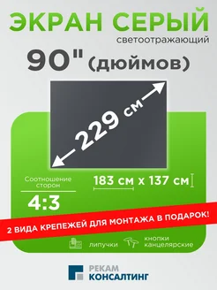 Экран для проектора серый настенный светоотражающий 90" 4 3