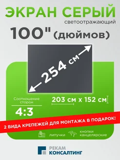 Экран для проектора серый настенный светоотражающий 100" 4 3