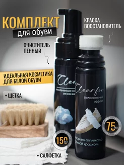 Белая краска для обуви и пена очиститель подошвы набор 2шт