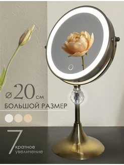 Зеркало для макияжа с увеличением и подсветкой 20 см