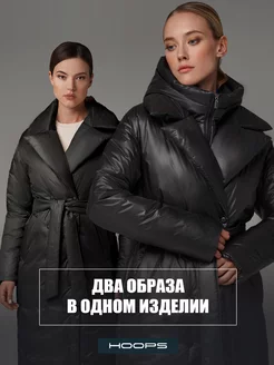 Пуховик зимний длинный с поясом