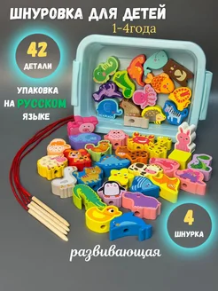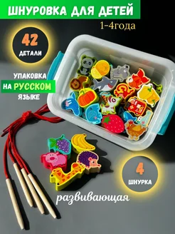 Шнуровка для детей развивающая деревянная в контейнере
