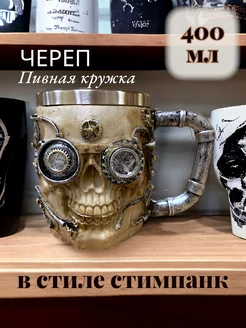 Кружка пивная подарочная Череп стимпанк 400 мл