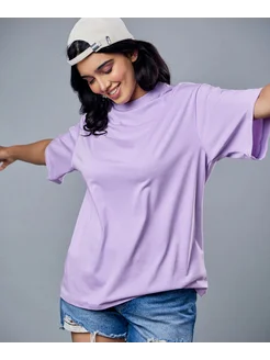 Однотонная футболка оверсайз сиреневая хлопок 100%