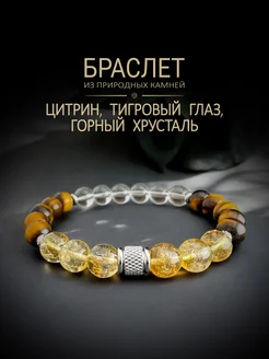 Браслет - цитрин, тигровый глаз, горый хрусталь