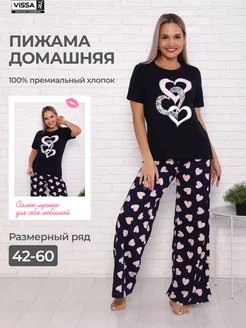 Пижама со штанами хлопок больших размеров новогодняя