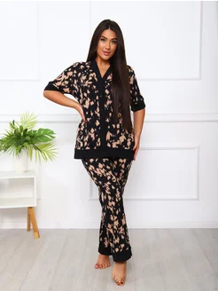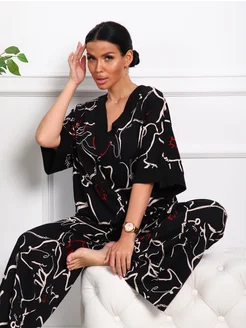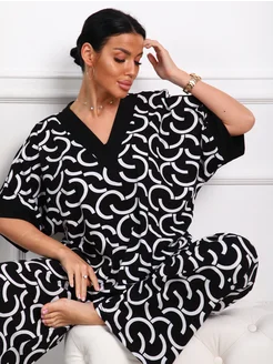 Пижама со штанами домашняя больших размеров новогодняя
