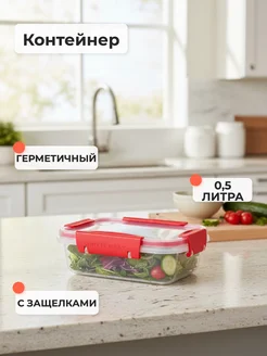 Контейнер герметичный для продуктов 0,5л хвоя красный