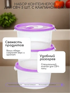 Комплект контейнеров СВЧ 3шт с клапаном (0,4л) микс