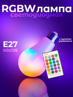 Большая светодиодная лампочка RGBW с пультом ДУ 80х135 Е27