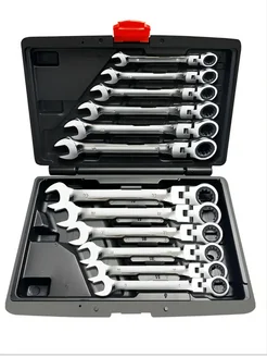 Набор трещоточных ключей с шарниром в кейсе 12 шт