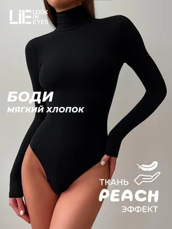 Боди водолазка с горлом и рукавами из хлопка