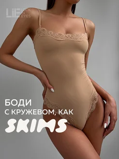 Боди без рукавов кружевное на бретельках