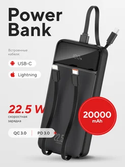 Повербанк 20000 mAh с проводами и быстрой зарядкой powerbank
