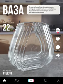 Ваза стеклянная 22х12 см прозрачный