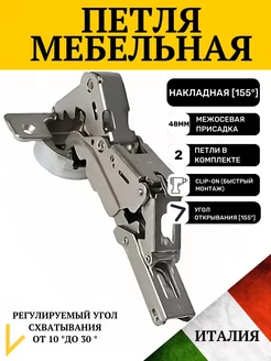 Петля мебельная накладная 155 ° с доводчиком фурнитура