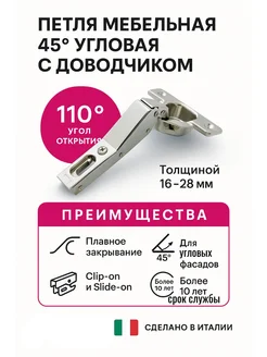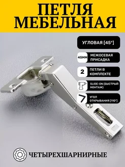 Мебельная угловая петля с доводчиком, 45 градусов, 2 шт