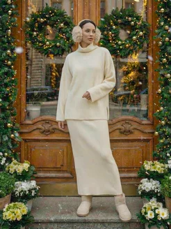 Свитер оверсайз удлиненный джемпер вязаный с горлом обьемный