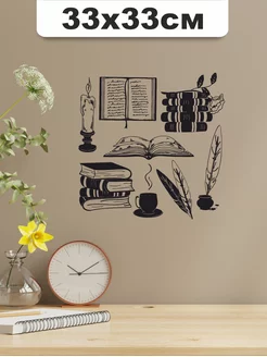 Наклейки на стену Книги Постеры интерьерные свеча с кружкой