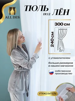 Тюль под лен 300х240 в гостиную с утяжелителем для дома