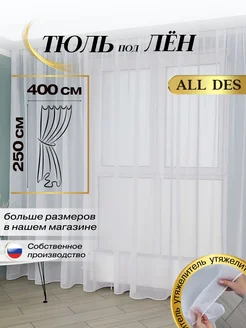 Тюль под лен белый 400х240 в спальню Штора