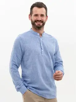Рубашка льняная с длинным рукавом без воротника пляжная